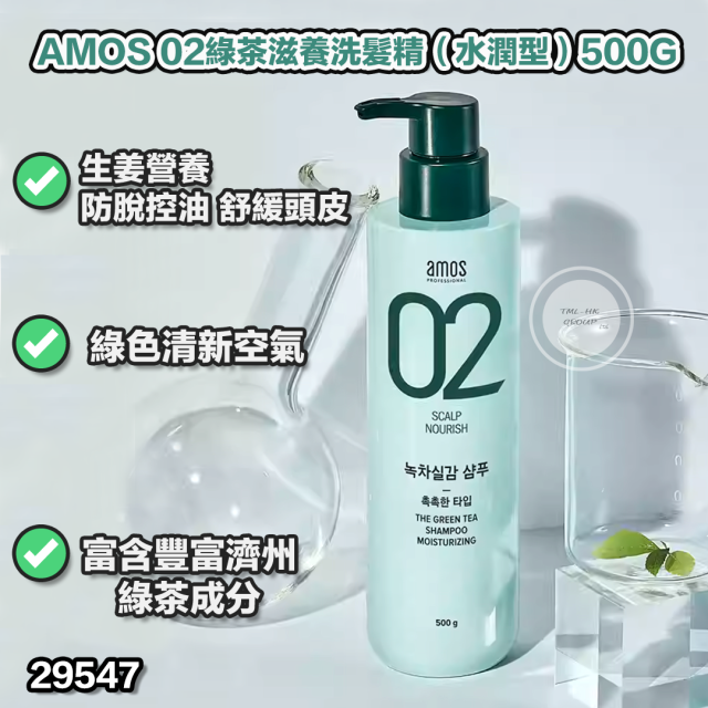29547.🐥執雞🐥AMOS愛茉莉詩 02綠茶滋養洗髮精(水潤型)500G⚠️數量有限⚠️先入先得⚠️售完即止⚠️
