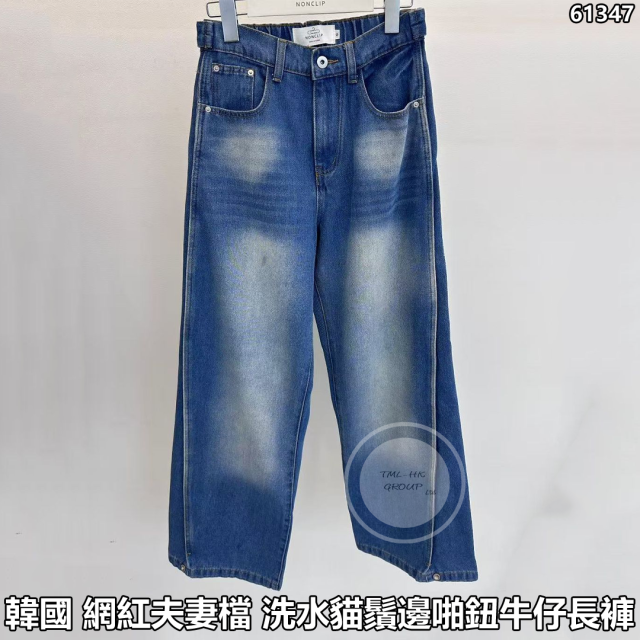 韓國 網紅夫妻檔 洗水貓鬚邊褲腳啪鈕牛仔長褲(闊褲/彎刀褲兩著)【26/1截單 | 預計2月尾到貨 | 20260121A(61347.)】
