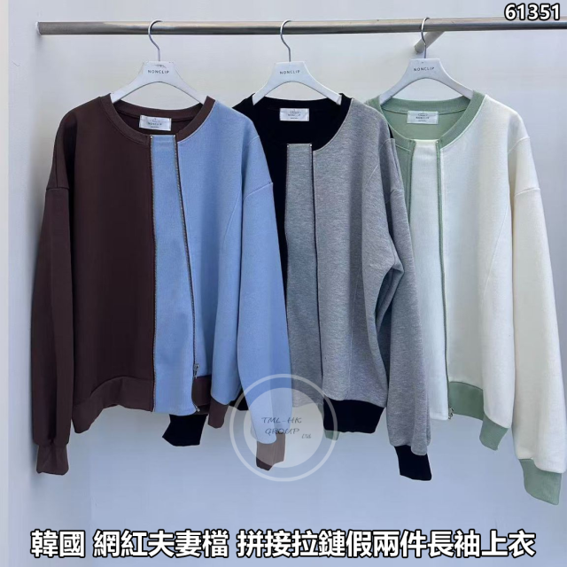 韓國 網紅夫妻檔 拼接拉鏈假兩件長袖上衣【26/1截單 | 預計2月尾到貨 | 20260121A(61351.)】