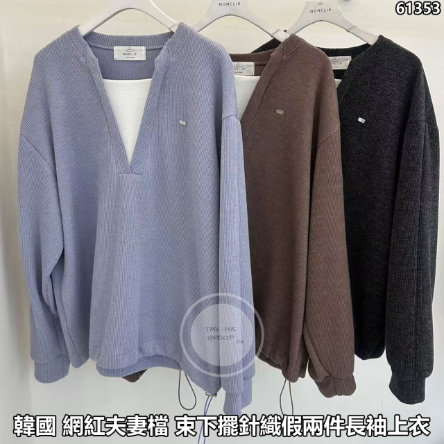 韓國 網紅夫妻檔 束下擺針織假兩件長袖上衣【26/1截單 | 預計2月尾到貨 | 20260121A(61353.)】