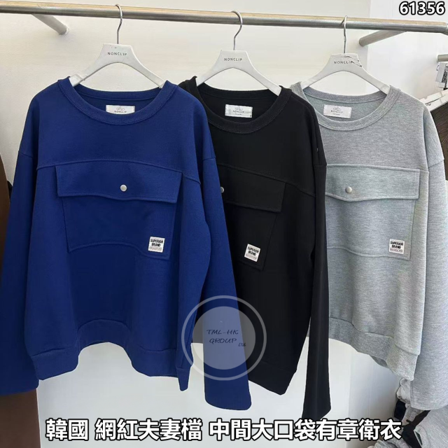 韓國 網紅夫妻檔 中間大口袋有章衛衣【26/1截單 | 預計2月尾到貨 | 20260121A(61356.)】