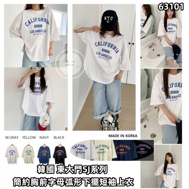 韓國 東大門SJ系列 簡約胸前字母弧形下擺短袖上衣【 5件包郵 | 13/3截單 | 預計4月中至尾到貨 | 20260308B(63101.)】