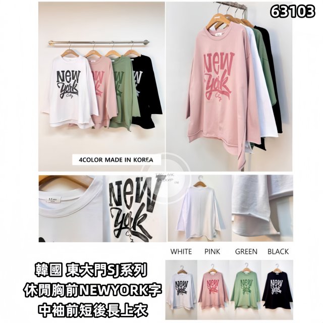 韓國 東大門SJ系列 寬鬆橫間側小開叉上衣(牛奶棉)【 5件包郵 | 13/3截單 | 預計4月中至尾到貨 | 20260308B(63100.)】