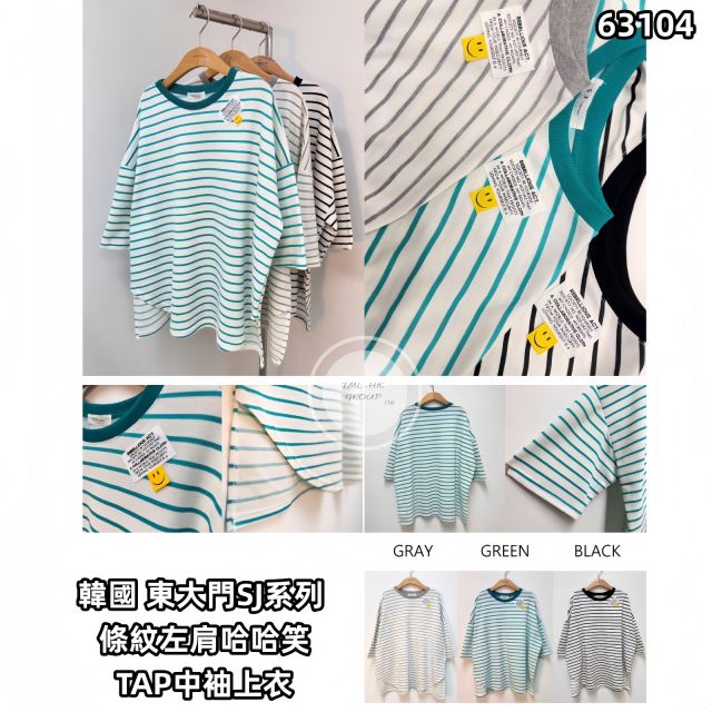 韓國 東大門SJ系列 條紋左肩哈哈笑TAP中袖上衣【5件包郵 | 13/3截單 | 預計4月中至尾到貨 | 20260308B(63104.)】
