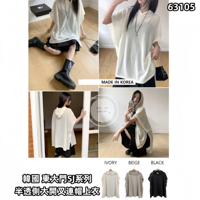 韓國 東大門SJ系列 半透側大開叉連帽上衣【5件包郵 | 13/3截單 | 預計4月中至尾到貨 | 20260308B(63105.)】