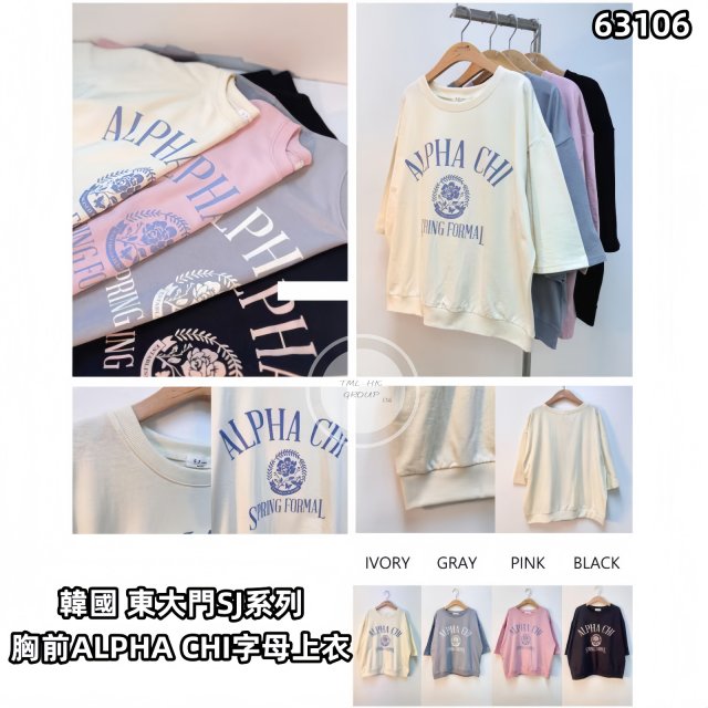 韓國 東大門SJ系列 胸前ALPHA CHI字母上衣【5件包郵 | 13/3截單 | 預計4月中至尾到貨 | 20260308B(63106.)】
