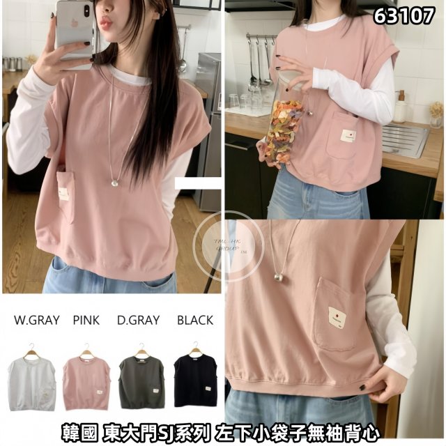 韓國 東大門SJ系列 左下小袋子無袖背心【5件包郵 | 13/3截單 | 預計4月中至尾到貨 | 20260308B(63107.)】