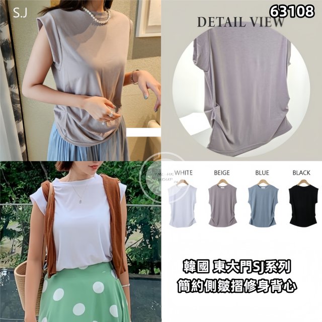 韓國 東大門SJ系列 簡約側皺摺修身背心【5件包郵 | 13/3截單 | 預計4月中至尾到貨 | 20260308B(63108.)】