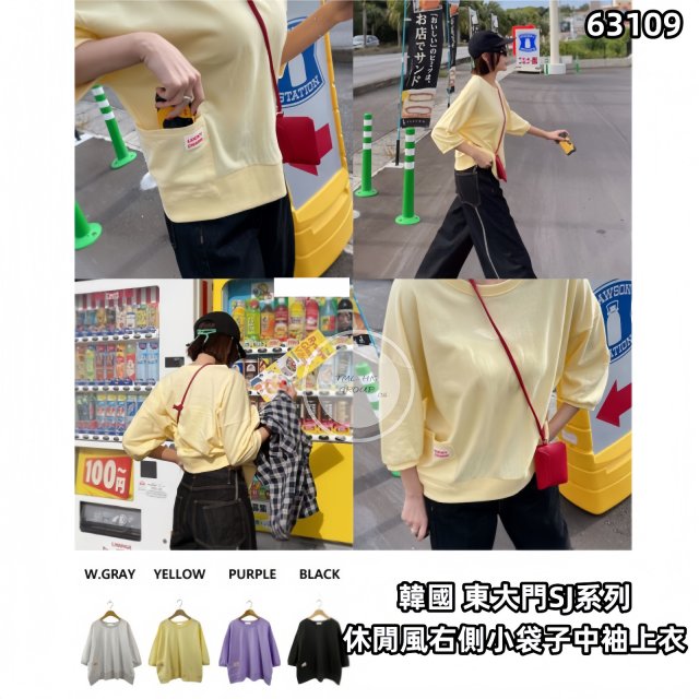 韓國 東大門SJ系列 休閒風右側小袋子中袖上衣【5件包郵 | 13/3截單 | 預計4月中至尾到貨 | 20260308B(63109.)】