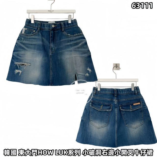 韓國 東大門HOW LUK系列 小破洞右邊小開叉牛仔裙(6000)【5件包郵 | 13/3截單 | 預計4月中至尾到貨 | 20260308B(63111.)】