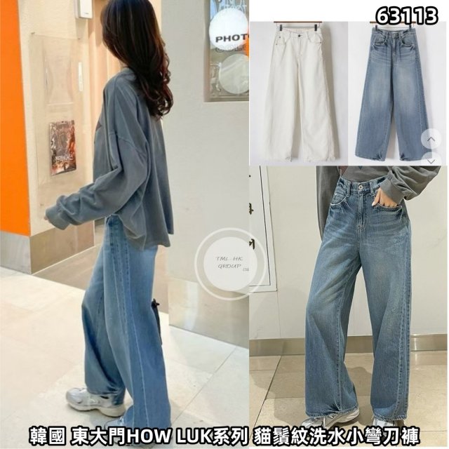 韓國 東大門HOW LUK系列 貓鬚紋洗水小彎刀褲(3004)【5件包郵 | 13/3截單 | 預計4月中至尾到貨 | 20260308B(63113.)】