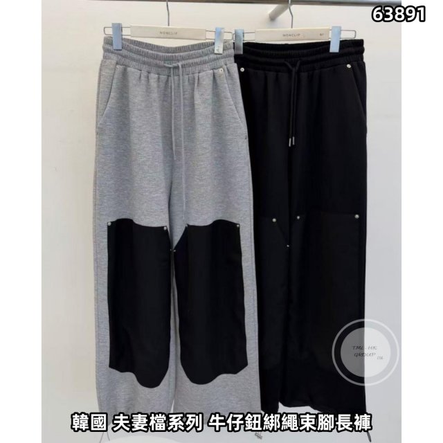 韓國 夫妻檔系列 牛仔鈕綁繩束腳長褲(可束腳) 【買滿5件包郵 | 23/3截單 | 預計4月中至尾到貨 | 20260318B(63891.)】