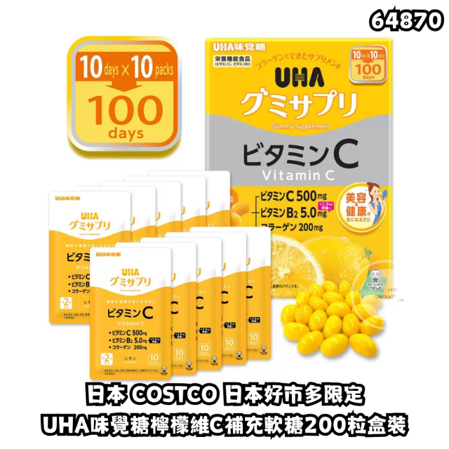 日本 COSTCO 日本好市多限定-UHA味覺糖檸檬維C補充軟糖200粒盒裝【買滿10件包郵 | 18/4截單 | 預計6月尾到貨 | 20260413(64870.)】