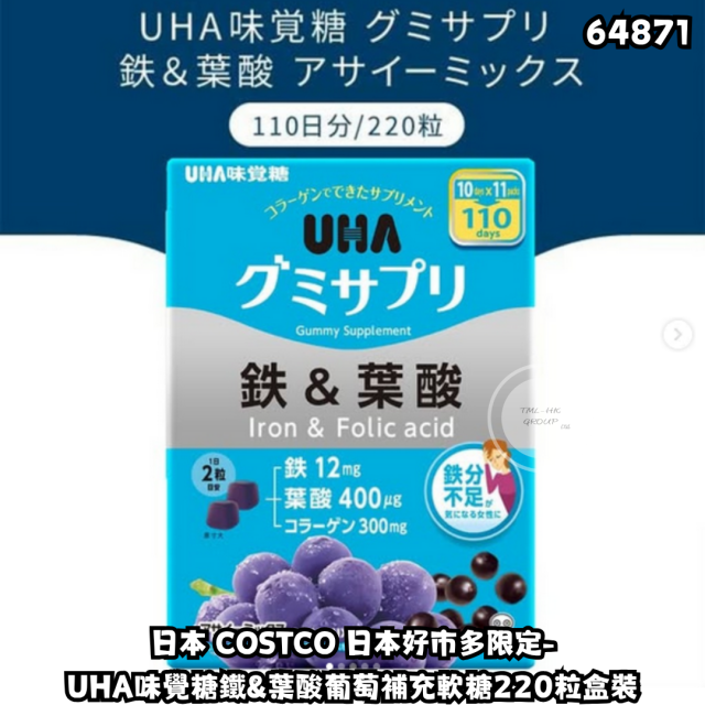 日本 COSTCO 日本好市多限定-UHA味覺糖鐵&葉酸葡萄補充軟糖220粒盒裝【買滿10件包郵 | 18/4截單 | 預計6月尾到貨 | 20260413(64871.)】