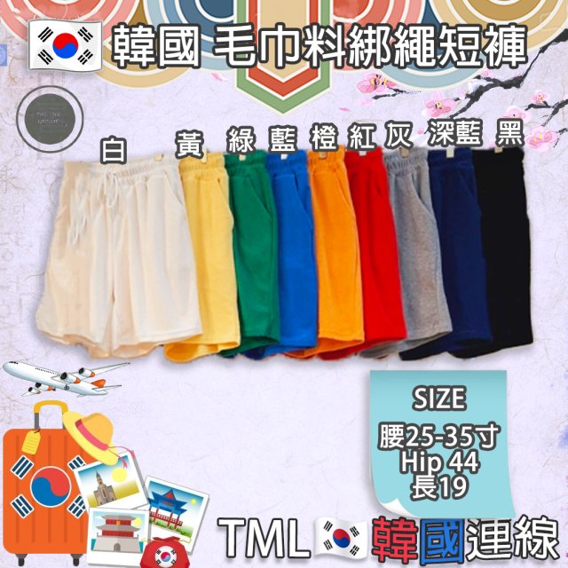 韓國 毛巾料綁繩短褲【現貨 | 預計2-3星期派貨 | 20260423Z(9722.)】