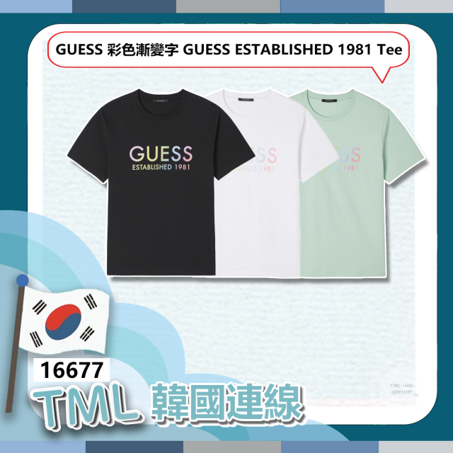 韓國 GUESS 彩色漸變字 GUESS ESTABLISHED 1981 Tee (MN2K9431)【現貨 | 預計2-3星期派貨 | 20260423Z(16677.)】