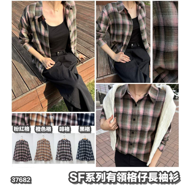 37682.10/10月韓國連線 SF系列 有領格仔長袖衫⚠️15/10截單⚠️預計11月尾到貨