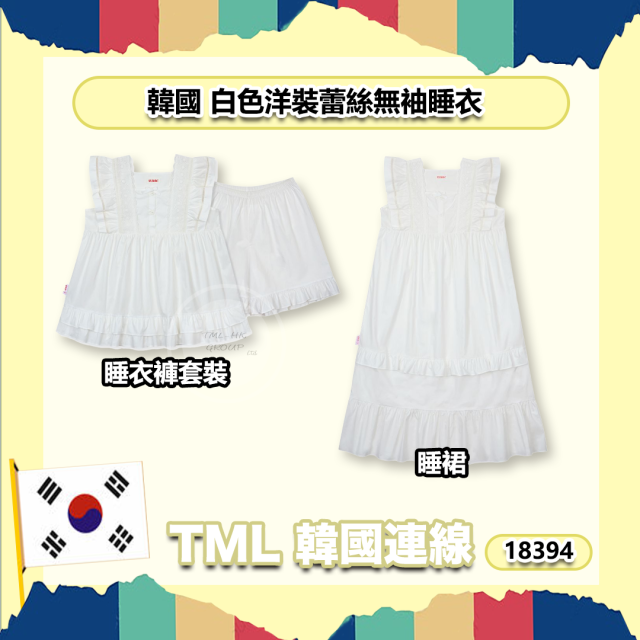 18394.【28/6 韓國連線🇰🇷】 韓國 白色洋裝蕾絲無袖睡衣⚠️只有直購 28/6/2023⚠️預計7月尾到貨❣️