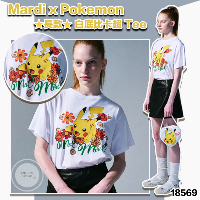 18569.🌟29/3月🇰🇷韓國連線🌟MARDI x Pokemon ⭐長款⭐ 白底比卡超 Tee