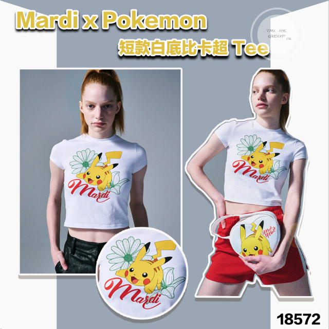 18572.🌟29/3月🇰🇷韓國連線🌟MARDI x Pokemon 🔴短款🔴 白底比卡超 Tee