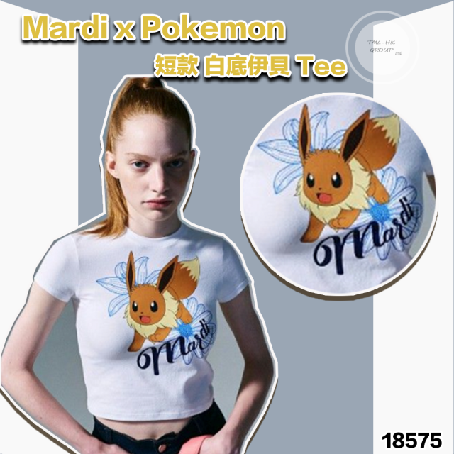 18575.🌟29/3月🇰🇷韓國連線🌟MARDI x Pokemon 🔴短款🔴 白底伊貝 Tee
