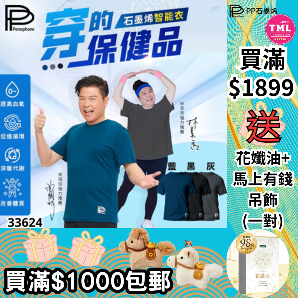 台灣PP石墨烯 石墨烯短袖智能上衣【PP產品買滿$1000包郵 | 3/1截單 | 預計2月中至尾到貨 | 20251229P(33624.)】