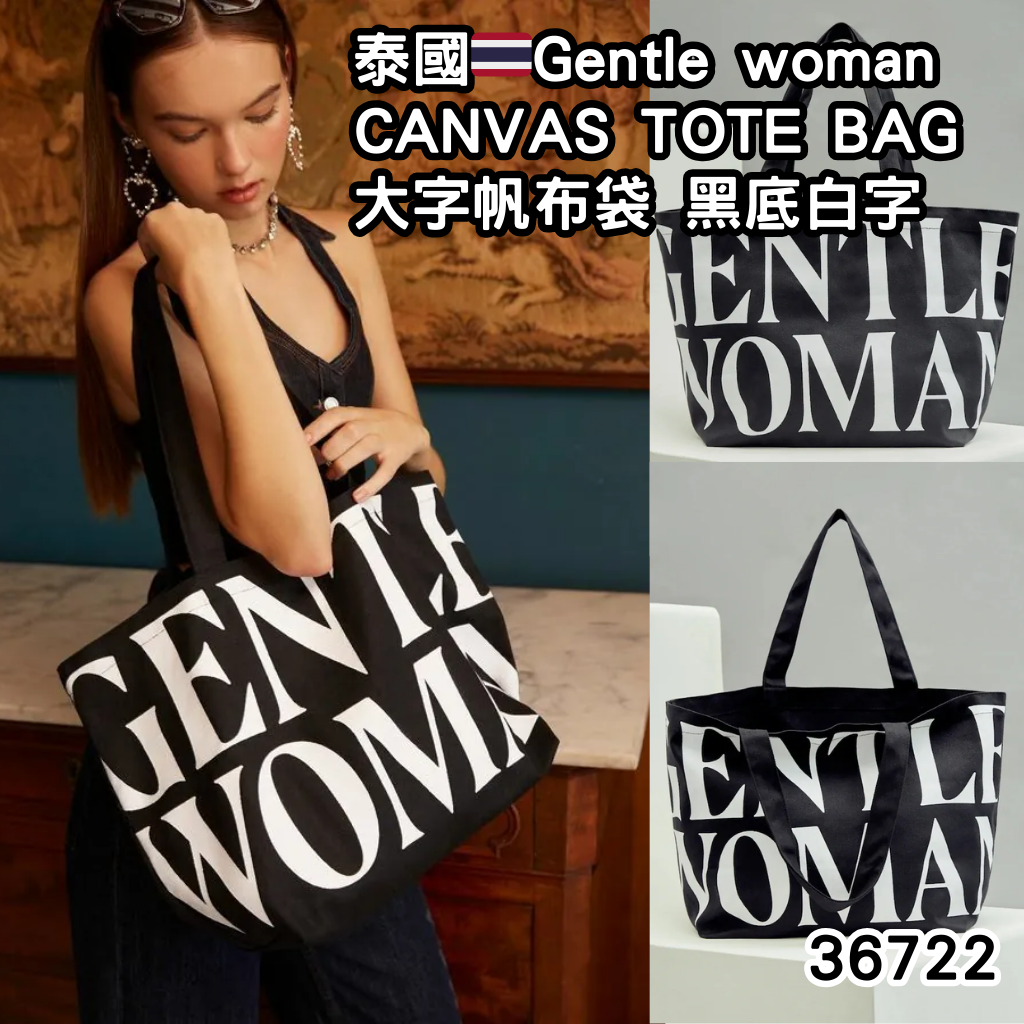 36722.🐥執雞🐥泰國🇹🇭Gentle woman CANVAS TOTE BAG大字帆布袋 黑底白字 ⚠️數量有限⚠️先入先得⚠️售完即止⚠️