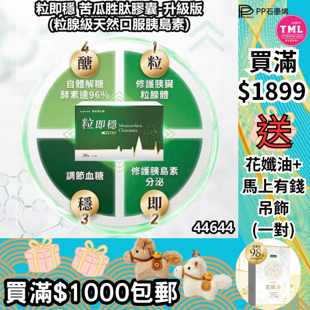 粒即穩 苦瓜胜肽膠囊-升級版(粒腺級天然口服胰島素)【PP產品買滿$1000包郵 | 3/1截單 | 預計2月中至尾到貨 | 20251229P(44644.)】
