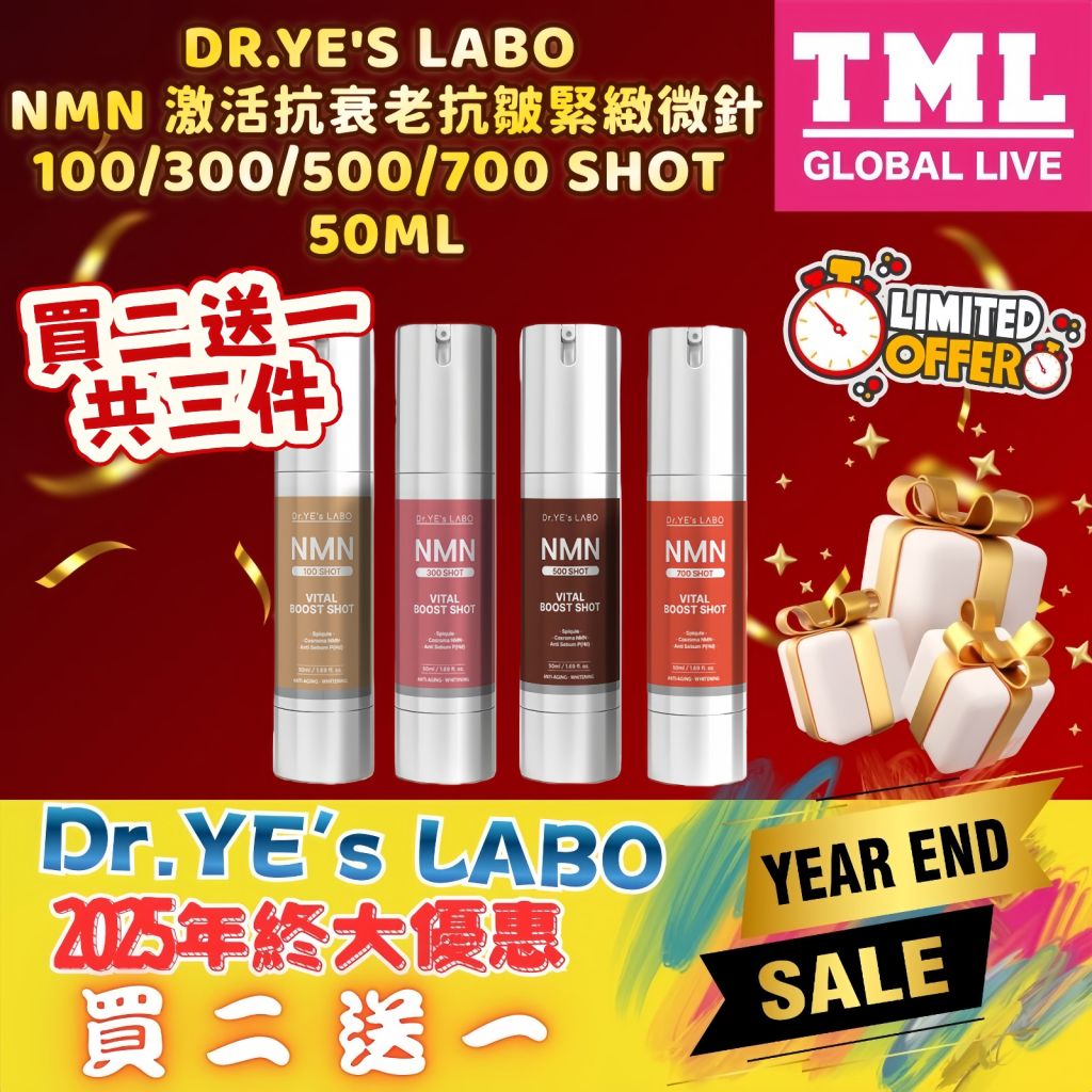 DR.YE'S LABO NMN激活抗衰老抗皺緊緻微針NMN VITAL BOOST SHOT 50ML (1 SET 買2送1 共3枝)【買滿$1000包郵 | 17/1截單 | 預計2月中至尾到貨 | 20260112(59022.)】