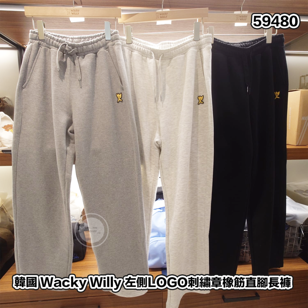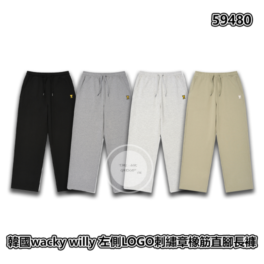 韓國 Wacky Willy 左側LOGO刺繡章橡筋直腳長褲(WA2503PT01)【19/1截單 | 預計2月中至尾到貨 | 20260114B(59480.)】