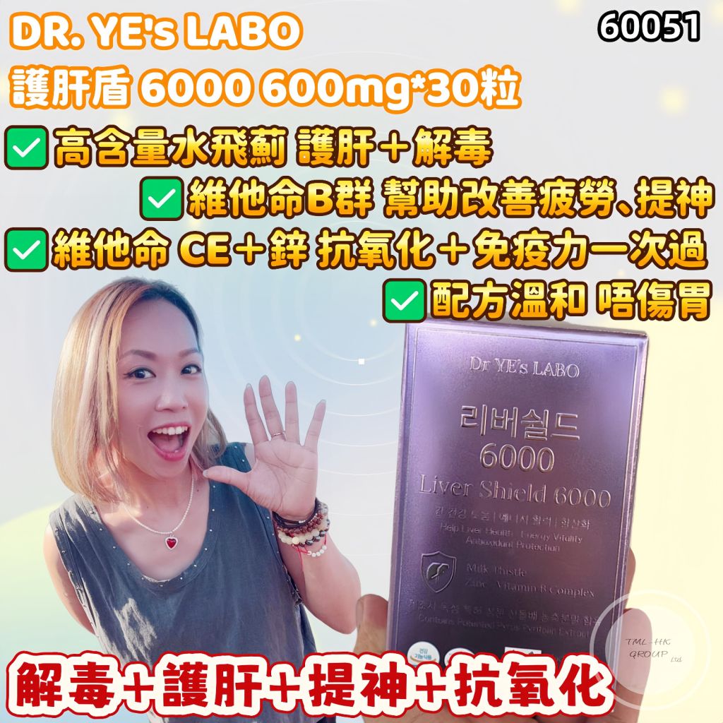 DR.YE's LABO 護肝盾 6000(Liver Shield 6000)600mg*30粒【買滿$1000包郵 | 17/1截單 | 預計2月中至尾到貨 | 20260112(60051.)】