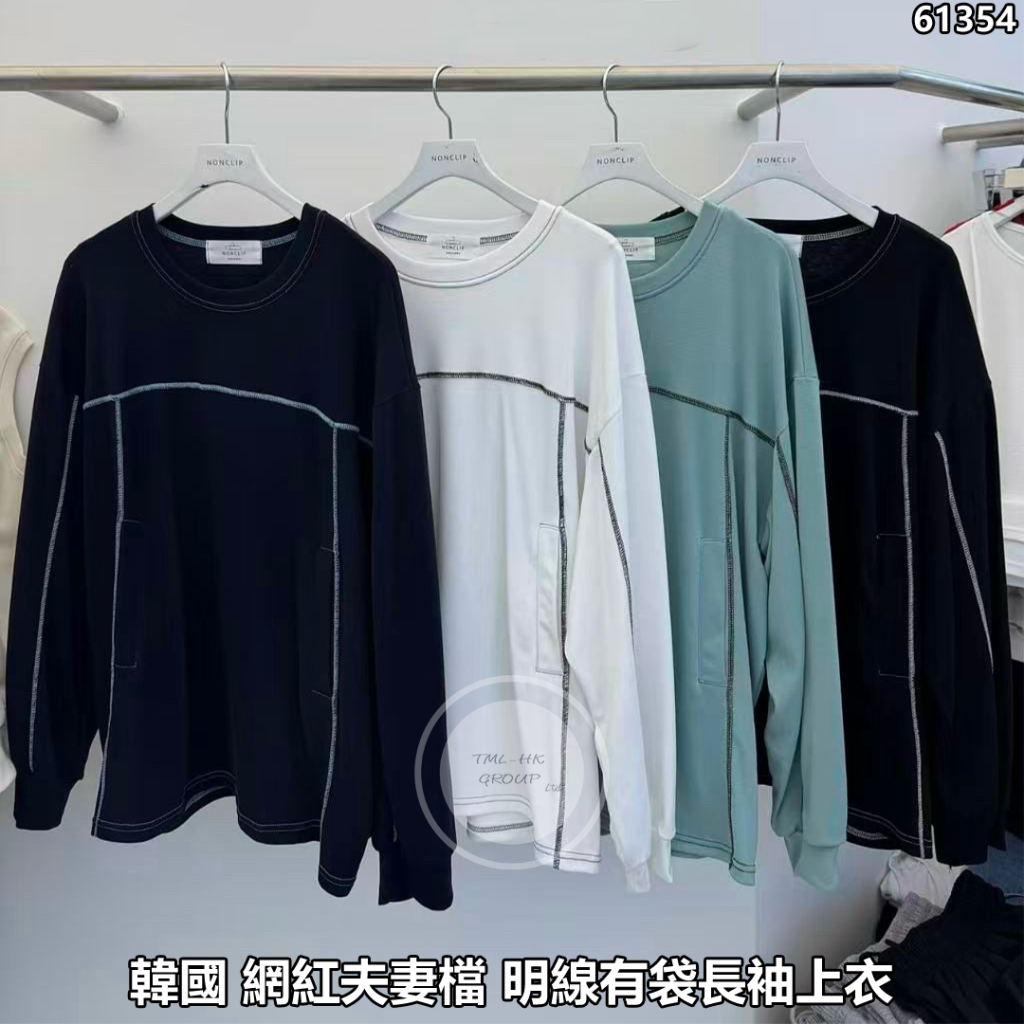 韓國 網紅夫妻檔 明線有袋長袖上衣(QQ彈性棉)【26/1截單 | 預計2月尾到貨 | 20260121A(61354.)】