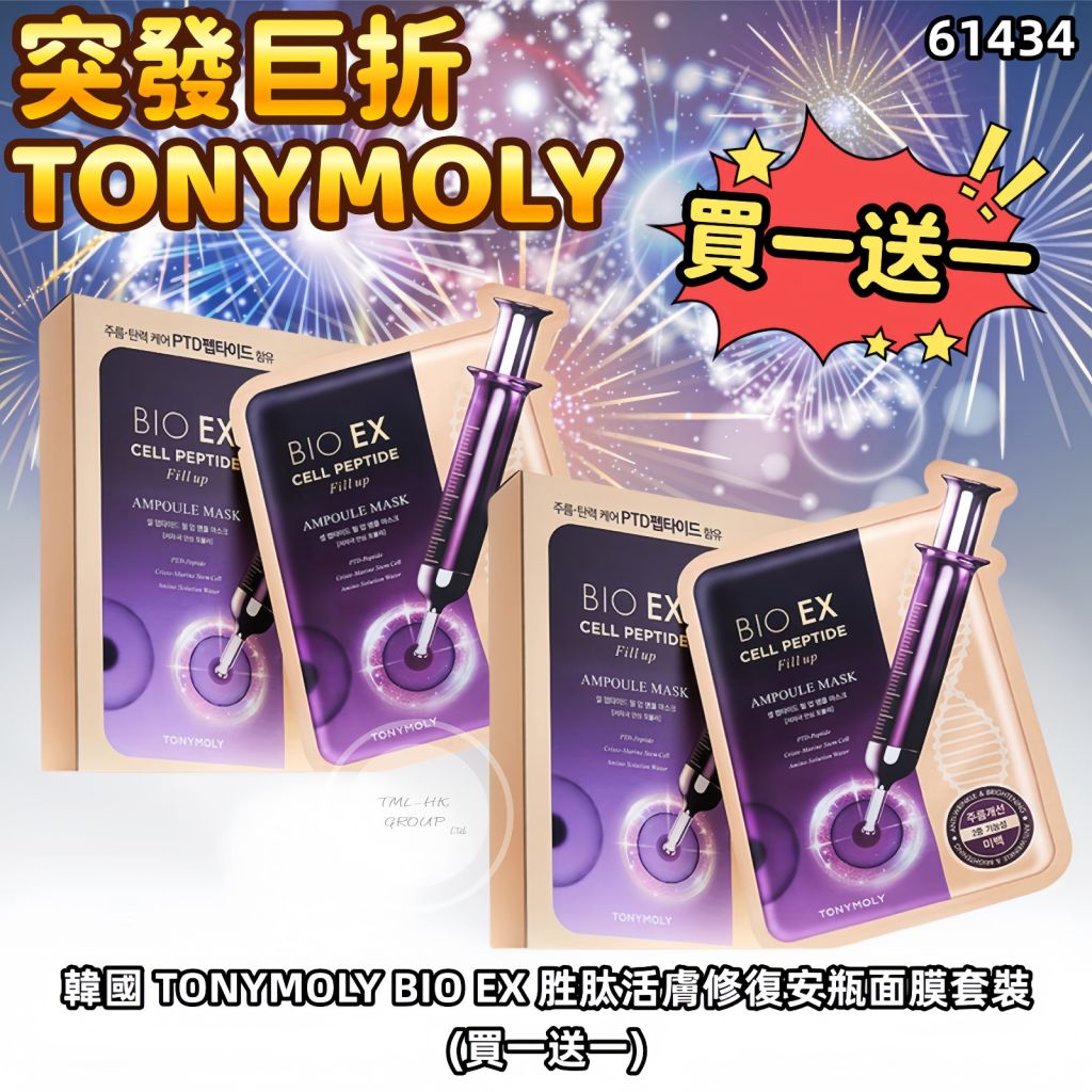 韓國 TONYMOLY BIO EX 胜肽活膚修復安瓶面膜套裝(買一送一)【22/1 6:00AM截單 | 預計2月尾至3月初到貨 | 20260121B(61434.)】