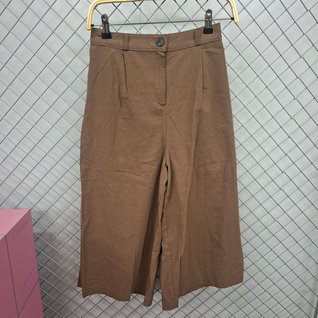 🧡後橡筋高腰拉鏈棉麻闊腿九分褲【 現貨 | 預計2-3星期派貨 | 20260224(62007.)】