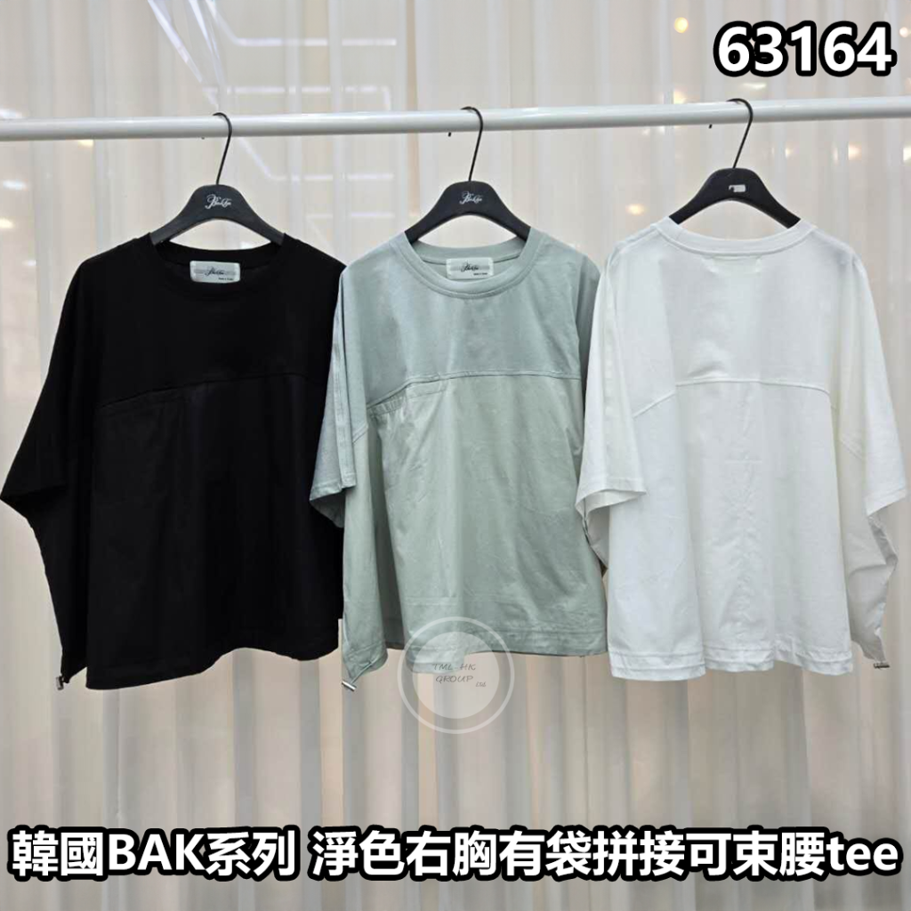 韓國BAK系列 淨色右胸有袋拼接可束腰tee【買滿5件包郵 | 16/3截單 | 預計4月中至尾到貨 | 20260311B(63164.)】