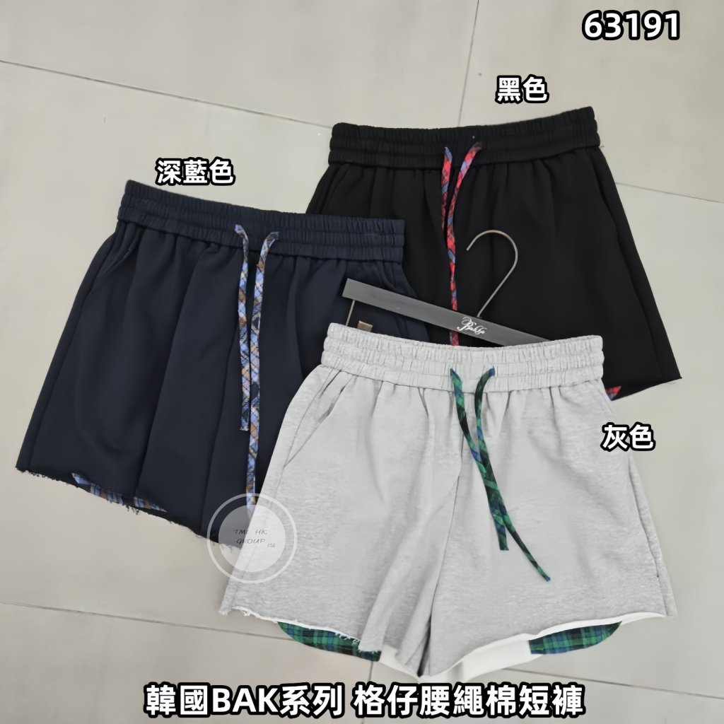 韓國BAK系列 格仔腰繩棉短褲【買滿5件包郵 | 16/3截單 | 預計4月中至尾到貨 | 20260311B(63191.)】