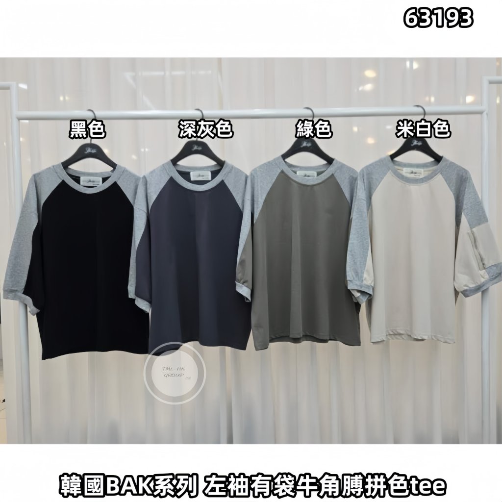 韓國BAK系列 左袖有袋牛角膊拼色tee【買滿5件包郵 | 16/3截單 | 預計4月中至尾到貨 | 20260311B(63193.)】