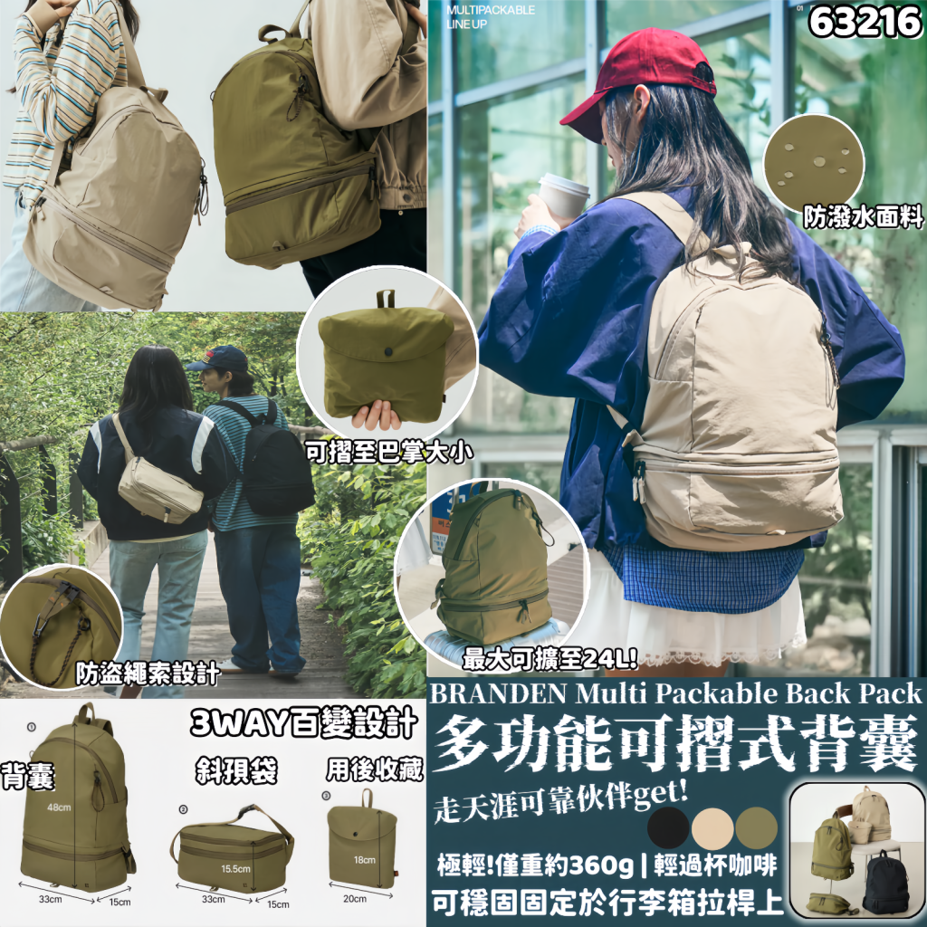 韓國 BRANDEN 多功能可摺式背囊【買滿$1000包郵 | 15/3截單 | 預計4月中至尾到貨 | 20260310B(63216.)】
