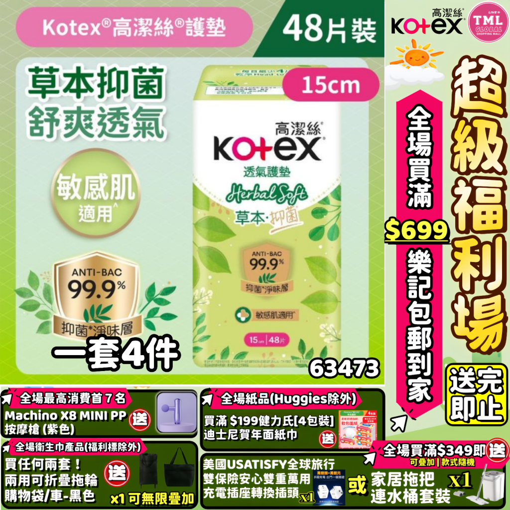 生活用品專場 Kotex 台灣製 草本抑菌護墊(15cmX48片)(1SET 4件)【買滿$699包郵樂記 | 19/3截單 | 預計4月中至尾到貨 | 20260314(63473.)】