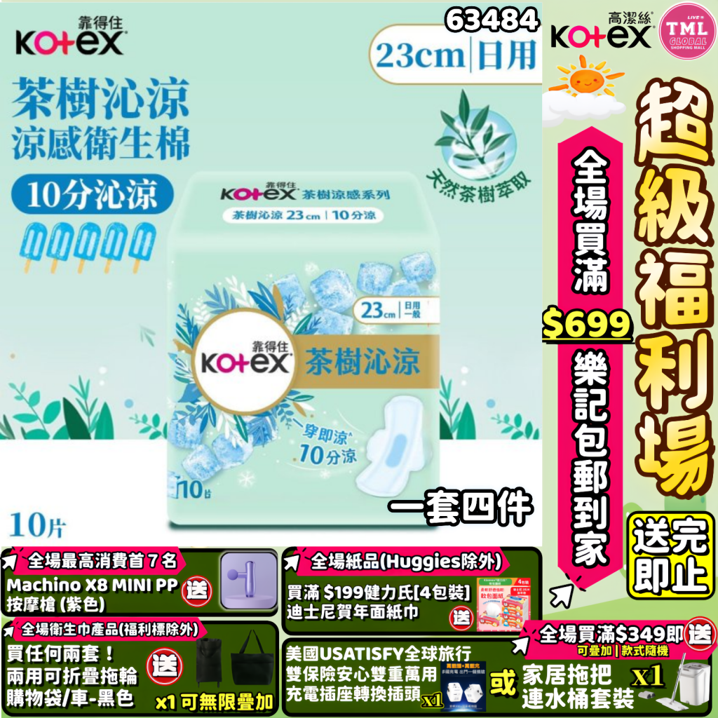 主頁 生活用品專場 Kotex 台灣製 靠得住茶樹10分沁涼日用衛生棉(23cmX10片)(1SET 4件))(14017975)【買滿$699包郵樂記 | 19/3截單 | 預計4月中至尾到貨 | 20260314(63484.)】