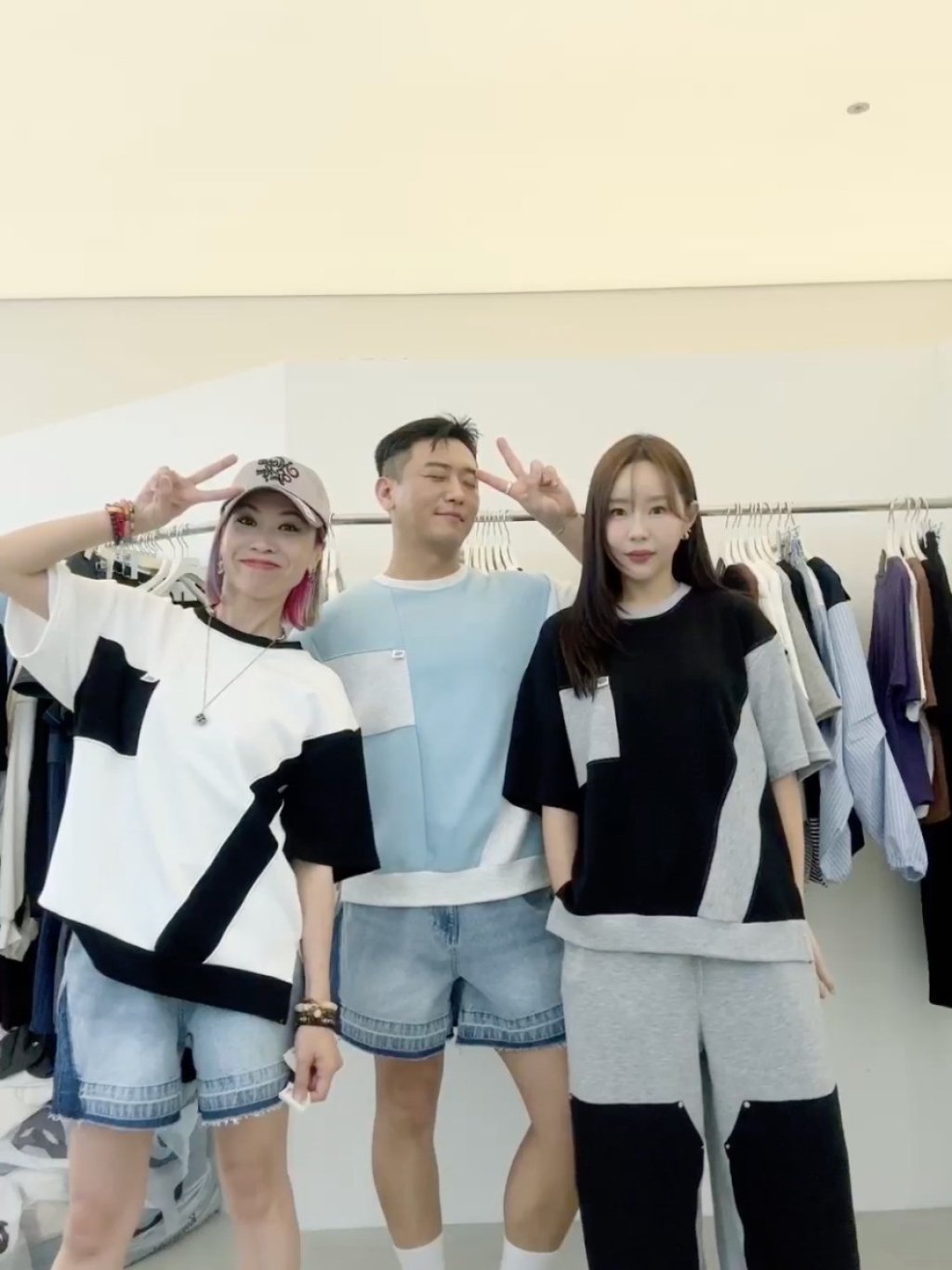 韓國 夫妻檔系列 正方斜間拼布側開叉Tee【買滿5件包郵 | 23/3截單 | 預計4月中至尾到貨 | 20260318B(63884.)】