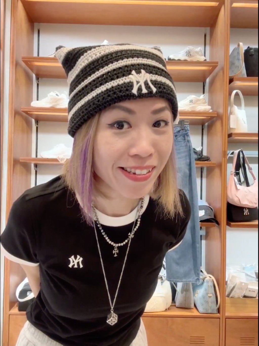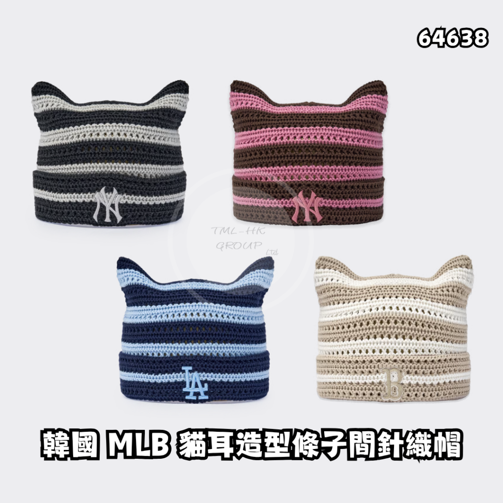 韓國 MLB 貓耳造型條子間針織帽(3ABNB0363) 【14/4截單 | 預計5月中至尾到貨 | 20260409A(64638.)】